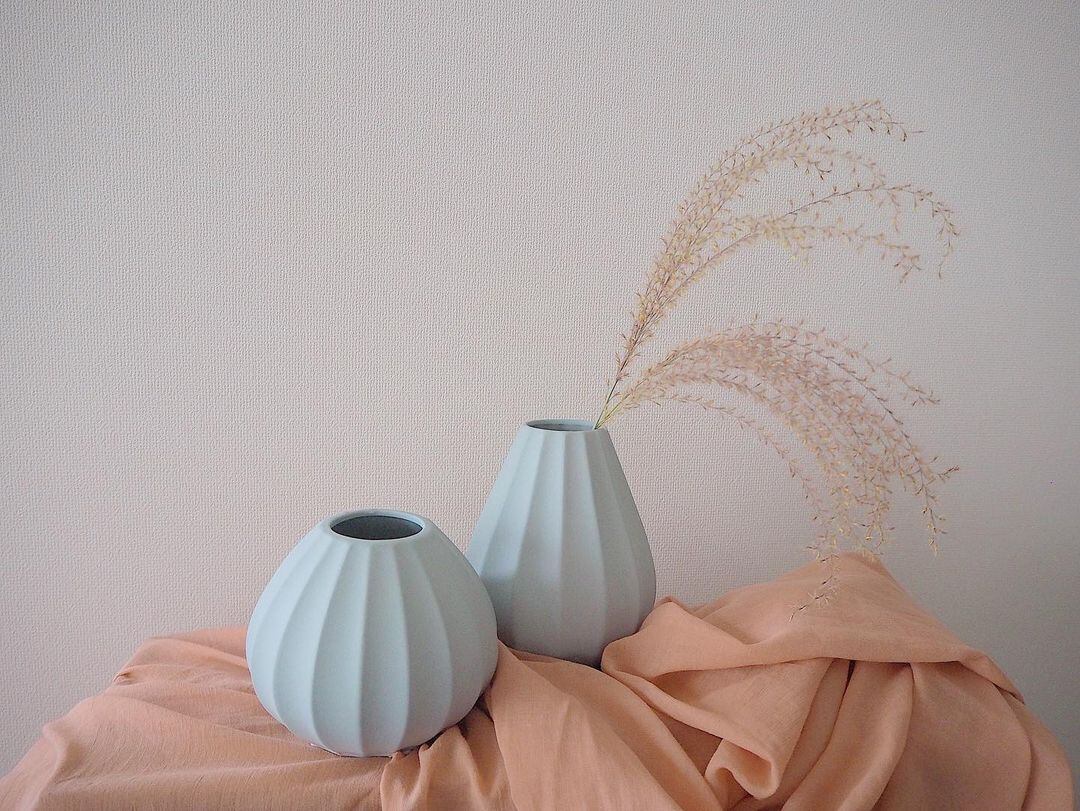 スモーキーなグレージュに近いマットな水色もインテリアにgood。